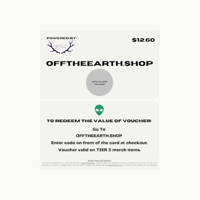 Unleash your shopping spree with Off the Earth Coupon Vouchers! Redeem these cards at OFFTHEEARTH.SHOP on a selection of unique accessories. Off the Earth offers a handpicked collection that’s out of this world. Perfect for gifting or treating yourself to something truly extraordinary! ✨ Ready to explore? The adventure starts now with your Off the Earth Voucher 🌎🛍 **NOT REDEEMABLE ON FROMTHEEARTH.COM** ***THIS VOUCHER SI REDEEMABLE ONLY FOR MERCHANDISE PURCHASES ON WWW.OFFTHEEARTH.SHOP - IT DOES NOT EXPIRE, IS NON-REFUNDABLE, AND CONOT BE EXCHANGED FOR CASH OR CREDIT. THE SELLER IS NOT RESPONSIBLE FOR LOST, STOLEN, OR DAMAGED VOUCHERS. USE OF THIS VOUCHER IS SUBJECT TO ALL APPLICABLE LAWS. VISIT WWW.OFFTHEEARTH.SHOP FOR COMPLETE TERMS AND CONDITIONS AND MORE INFORMATION***