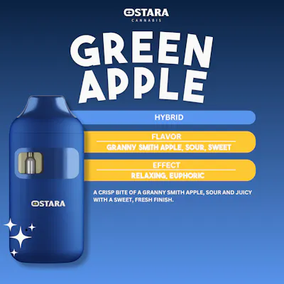 Flavor: Granny Smith Apple, Sour, Sweet Effect: Relaxing, Euphoric A crisp bite of a Granny Smith apple, sour and juicy with a sweet, fresh finish.