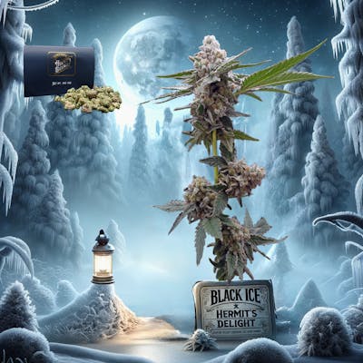 Black Ice is not your typical icy treat, but a cannabis strain so chill it could frost your eyebrows. Born from the frosty embrace of Black Domina and ICE, this Indica-dominant hybrid is the go-to hermit's choice for a sedative escape to the cooler side of the woods. Imagine lounging in an enchanted frost-covered grotto, where every puff adds a layer of cool to the air, and the potent effects are as soothing as the whisper of winter. Whether you're curling up with a good old mystical tome or simply watching your breath fog up the moonlit cave, Black Ice turns your chill session into a frosty fairy tale. Just remember, while you're wrapped up in this icy enchantment, don't let the cave bears steal your munchies!