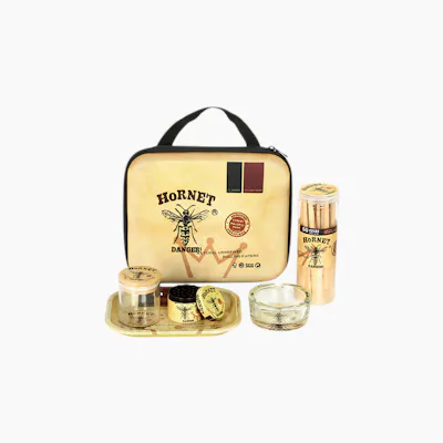 5-piece smoking accessory set, featuring a selection of essential items enclosed within a vibrant EVA zipper bag . one carton 24set . Smoking set inside includes : 110mm rolling paper, Glass jar with bamboo lid, Metal herb grinder, Rolling Tray, Ashtray.
