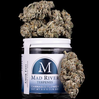 Rare exclusive grown indoors by Mad River Terpenes: Jokerz x Point Break The Latin phrase for ‘love of fate' or ‘love of one's fate,' this bud packs a bright and happy high that will have you feeling like you're in the best mood of your life. The Amor Fati high will hit you quickly, activating your mind with a soaring sense of happy energy and motivation. You'll feel super euphoric and creatively inspired, ready to get sociable or get working on anything you've been avoiding on your to-do list. A sharp sense of focus accompanies this bright energy, keeping you on-task and mentally clear for hours on end. With these effects and its super high 26-27% average THC level, Amor Fati is often suggested to treat experienced patients with a variety of conditions including chronic fatigue, chronic stress or PTSD, headaches or migraines, depression or mood swings and ADD or ADHD.