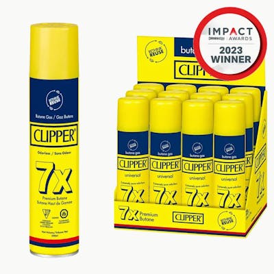 Introducing Clipper's 7x refined Butane Gas. This 300ml can of pure and reliable fuel has a superior refinement process ensuring a clean burn. Refill all your Clipper Reusable lighters with Butane in one easy step with the least polluting gas that guarantees the stability of the flame!
