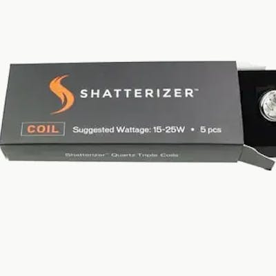 Shatterizer's Quartz Triple Coils are a bigger and powerful coil that has triple the heating elements and more capacity for larger amounts of cannabis extracts . The new Quartz Triple Coil and coil cap is included with the new BUBBLER by Shatterizer. The QTC coil works perfectly in ALL of Shatterizer vaporizers. The QTC cap is tooled for good grip, making loading product onto the coil easy. QTC Coil Caps are necessary for air flow and sold-separately. All our Shatterizer Coils generally last 2-3 weeks or longer depending on frequency, product, usage and cleaning care. All replacement Shatterizer Coils come in convenient 5 packs. All Shatterizer coils are very easy to clean and offer the perfect taste every time.