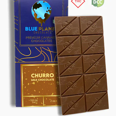 "Creamy milk chocolate blended with crunchy churro pieces, crystallized sugar, and a touch of Madagascar cinnamon creates a warm and sweet spiced flavor experience. With 550 milligrams of THC in each bar, this elevated format offers a bold and flavorful option for those who prefer a higher milligram chocolate. Crafted by Blue Planet Chocolate using recipes developed by Cleveland Master Chocolatier Joel Fink and his skilled team, this bar reflects more than 40 years of chocolate-making expertise. Powered by Lighthouse Sciences, each piece is precisely infused using premium cannabis oil and produced with care to ensure consistent quality and a clean finish. Ingredients: Cannabis concentrate, sugar, chocolate liquor, cocoa butter, milk, soy lecithin, vanillia, whole grain wheat, corn meal, brown sugar syrup, canola oil, honey, baking soda, dextrose, trisodium Phosphate, Natural flavor, rosemary extract"