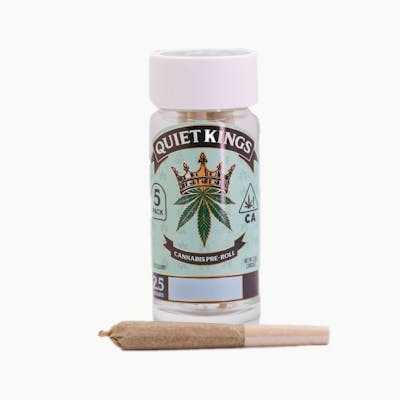 "Quiet Kings is built on precision, purpose, and a commitment to doing things right. With decades of agricultural experience and over a million square feet of cultivation, we craft premium, strain-specific cannabis that’s accessible and reliable. From California’s Central Coast, we grow more than great flower, we create sustainable jobs and opportunities that strengthen our community. Excellence isn’t flashy; it’s in every detail we deliver. " "Five rolls, endless good vibes! Crafted with strain-specific, whole flower only (never shake), these 0.5g pre-rolls are designed for a smooth, even burn every time. Whether you’re sharing with the crew or spreading the love across the week, this 5-pack delivers premium flavor, reliable potency, and serious bang for your buck, no throne required. " LEARN MORE HERE