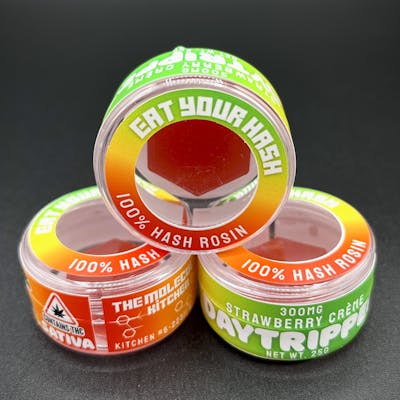 "Eat Your Hash" 100% hash rosin | 300mg per pack, (1) gummy, 300mg per piece | Daytripper - Strawberry Crème (Sativa) | Contains gelatin, tree nut oils, & artificial dyes