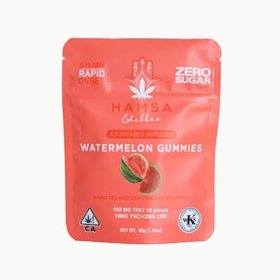 10 pieces - 10mg per THC Hybrid per piece 100mg total per bag Vegan - Gluten Free - Fast Acting - Kosher Certified - Zero Sugar A punch of flavor filled with all things good for you! Low glycemic, diabetic friendly, made with allulose and probiotics that are gentle on the tummy.