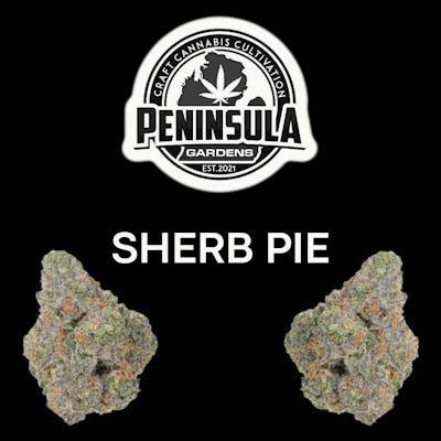 Sherb Pie Pre-Pack Ice Cream Cake x Sunset Sherbet Indica Leaning Hybrid Flavor- Sweet, Vanilla, Fruity Effect- Happy, Relaxing —- About This Strain —- @Bonez_grown cut of Seed Junky’s Sherb Cake. Beautiful purple buds that lean heavy towards the sherb smell and flavors with just enough of the cake flavor to compliment. An indica-dominant cross of Ice Cream Cake x Sunset Sherbet. Ice Cream Cake produces a relaxing full-body experience that you can feel start in your head and roll out all the way down to your feet. This frosty strain tastes like you are treating yourself to some creamy, sweet goodness and smells just as great! When you're ready for some chill, pack yourself a bowl of Ice Cream Cake. Just like the name evokes, you’ll be happy riding into the sunset with this relaxing, carefree strain. Sunset Sherbet offers both physically relaxing and mentally stimulating effects, making it a perfect choice for day or evening use. ----------------------------------------------------------------------------------------------------------------------- —- About The Brand —- Peninsula Gardens is the cumulation of 50+ years combined experience growing in the caregiver market. We came together to create a company that is true to the origins of this industry and pushback against corporate cannabis. Our goal is to constantly push ourselves and produce high end craft quality cannabis on a consistent basis. Clean burn, white ash, loud smell, and big flavor. These are all boxes we’re making sure we check run after run. We smoke what we grow and believe that extra effort we put in shines through on our end product. We’re always raising the bar and refining our processes to become the best growers possible. From clone all the way through to packaged flower our team cares and wants you to experience what it’s like to #KeepItPG. Our roots run deep in this industry, and we do it for the plant we all love. Good starting genetics are one of the most important parts of craft cannabis. We are constantly on the hunt for new standouts that bring something unique to the market. Trying to cover a variety of terpene profiles and effects that all levels of cannabis connoisseurs can enjoy. Everyone likes something different whether it be fruity, gas, or somewhere in-between and we want to make sure we’ve got that covered.