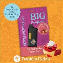 Franklin Fields 2g Disposable Vape Our 2g disposable vape delivers unmatched quality and flavor. Made with quadruple filtered distillate from indoor-grown Franklin Fields flower and infused with premium terpenes, each 2ml AIO device is USB-C rechargeable for smooth, clog-free sessions.