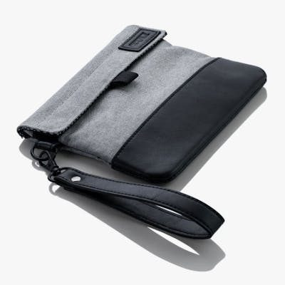 ** PLEASE SPECIFY your desired color at checkout in the "special instructions" field: - Brown Leather - Black Leather The GRAV® Smell-Proof Pouch is the perfect accessory for storing everything you need for a great smoke sesh. It comes in gray durable fabric with your choice of brown or black vegan leather accents. The clip on vegan leather wrist loop makes the pouch easy to carry or to attach to a larger bag. The bag is held closed by strong velcro as well as a rubber lined zipper that keeps smells locked inside. The inside has two roomy mesh pockets with enough space for your stash as well as a lighter, a hand pipe, and even a snack. The inside of the pouch also has 100% carbon lining, making the smell-proof security even stronger. The GRAV® Smell-Proof Pouch is a must-have for any on the go smoking adventure. Dimensions: 7"x 6"