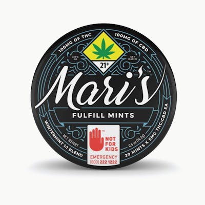 5mg CBD + 5mg THC per mint. Mari's Mints (pronounced mair-eez) are confectioner-quality edibles you can tailor fit to your day, crafted to always be reliable and delicious. Our cannabis infused mints are gluten free, vegan, discreet, and great for on the go. Let's get Mari'd!