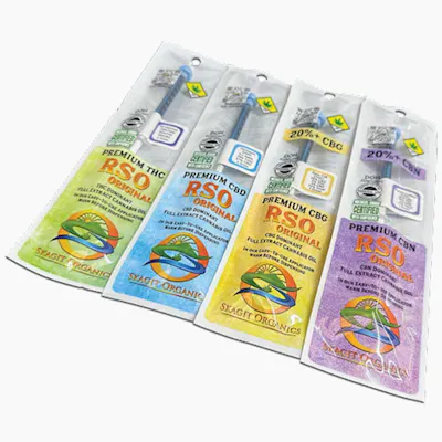 Skagit Organics RSO Original Oils - The Whole Plant, Concentrated. DOH-compliant with additional terpene and DDT testing. We call this elevated testing standard DOH+. Voted Best RSO in Washington two years in a row! Available in 1-gram, 3-gram, and 7-gram packages, with THC, CBD, CBG, and CBN cannabinoid profiles in oral syringes or capsules. Washington's most popular RSO is a must-have for your stash! The effectiveness of RSO comes from the extraction of beneficial plant constituents along with a full spectrum of cannabinoids such as THC, CBD, CBG, and CBN, among others. Similar to the complex mix of micronutrients found in healthy whole foods, our RSO Original oils are rich in beneficial plant proteins, terpenes, fats, waxes, and chlorophyll.