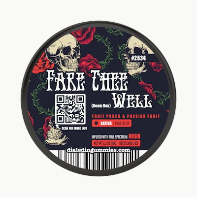 Collaborator: Bonsai Flavors: Fruit Punch, Passionfruit Lineage: (Boom Box) Description: Sativa • Dialed Up | Fare Thee Well—formerly known as Bass Drop—is here with the same high-energy spirit and a fresh new name. Grown by Bonsai and built on the vibrant Boom Box lineage, this sativa is all about volume, momentum, and good times that don’t fade out early. Paired with Fruit Punch and Passion Fruit gummies, the flavor hits bright and juicy, like the first track of a set that instantly pulls you into the crowd. Expect an upbeat, heady lift that sharpens focus and fuels creativity without losing its playful edge. This is the kind of sativa that makes music hit harder, conversations flow easier, and ideas stack up faster than you can write them down. Whether you’re chasing inspiration, cruising through a busy day, or just riding the wave of a great mood, Fare Thee Well keeps the energy high and the vibes moving forward. Dialed up, turned on, and ready to play it loud.