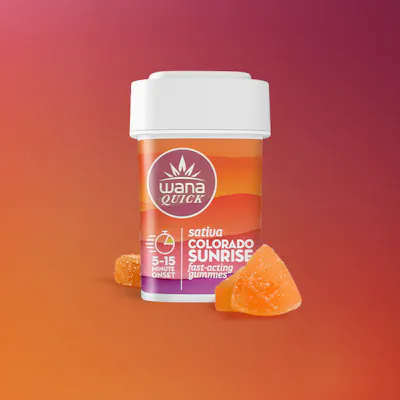 With a mountain-region riff on the flavors of a Tequila Sunrise, these fast-acting Sativa gummies blend citrusy notes of orange with a pop of tart cherry.