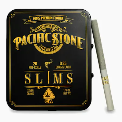 Pacific Stone Slims offer the perfect blend of quality and convenience for those who value a premium smoking experience on the go. Each Slim is carefully crafted from 100% California greenhouse-grown premium flower, ensuring that every puff delivers the freshness and potency you expect. Grown in sustainable greenhouses, our flower benefits from a clean and controlled environment, resulting in a product that is as eco-friendly as it is high-quality. The Slims' smaller size not only makes them ideal for discreet smoking but also intensifies the vibrant flavor profiles of each strain, turning every session into a unique and enjoyable experience. Whether you're out exploring or unwinding after a long day, the Slims 20-pack is your go-to choice for a convenient, flavorful, and environmentally conscious smoke.