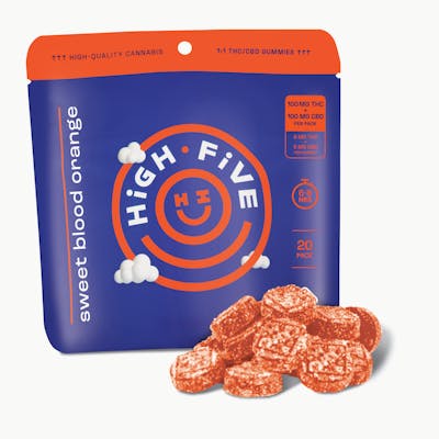 High Five: Gummies | Sweet Blood Orange 1:1 | 100mg THC : 100mg CBD | 20pk
