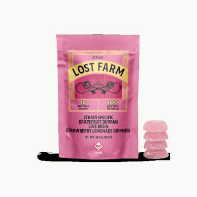Lost Farm: Live Resin Gummies | Grapefruit Durban x Strawberry Lemonade | 100mg | 10pk