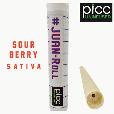 #Juan-Roll | Pre-roll 1 Gram | Uninfused Pre-Roll Mixed-light full flower pre-rolls, utilizing patented PICC uninfused platform for the perfect burning experience. Strain: Sour Berry (Sativa) THC: 12.6% Flavor Profile: Sweet berry upfront with tangy citrus brightness, balanced by subtle floral spice and earthy undertones. Smooth, refreshing, and aromatic. Dominant terpenes: β-Caryophyllene, Guaiol, Linalool, α-Humulene, α-Bisabolol Effects: Sour Berry delivers an uplifting sativa experience with mental clarity and light, easy body relaxation. Great for daytime creativity, social flow, or keeping energy elevated.
