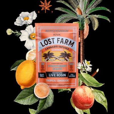 Infused with Ztrawberry Guava Live Rosin Strain Notes - Ztrawberry Guava is an indica-leaning hybrid celebrated for its blissful, body-calming effects and uplifting cerebral buzz. Bursting with tropical fruit aromas, it combines ripe strawberry sweetness with exotic guava tang, layered over subtle earthy undertones for a smooth, relaxing experience. Flavor Notes - Bright, zesty tropical lemonade flavors shine up front, complemented by the juicy, tropical berry essence of Ztrawberry Guava live rosin. Crafted as strain-specific, plant-based gummies, each 10mg piece contains 100% live solventless rosin for a distinctively full-spectrum, true-to-the-plant high.