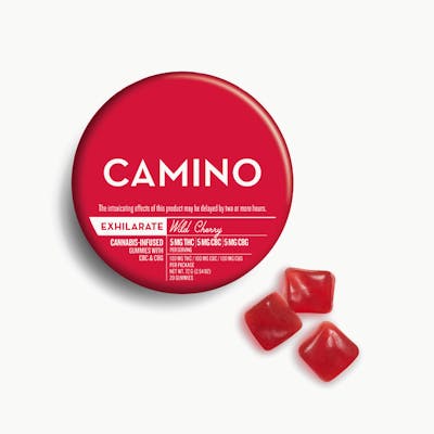 From an amorous night -in to an all-night rager, there's only one sidekick you'll want with you: Wild Cherry Exhilarate Camino gummies. Each tantalizing gummy is packed with the perfect blend of 5MG of THC, 5MG CBC, and 5MG CBG alongside sativa-like terpenes and an invigorating sweet cherry flavor designed to open both body and mind and get your spirits soaring (without alcohol!) THC, often associated with feelings of euphoria, plays a role in promoting balance and well-being. 5MG of THC is the perfect amount for a stimulating experience. Sativa-like terpenes are included for their uplifting, energizing effects and work synergistically with THC to create the gummy's stimulating sensations. CBC supports natural mood enhancement. CBG provides holistic relief from head to toe, reducing tension and supporting tranquility in the face of everyday stresses. If you're looking for the most delicious way to free both mind and body and unleash your enthusiasm at home or out, choose Wild Cherry Exhilarate Camino gummies – your ultimate go-to for igniting joy and freedom. Terpenes: Alpha-Pinene, Beta-Caryophyllene, Limonene, Valencene