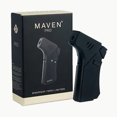 Maven Pro. Featuring a fashion forward design and ergonomic hand grip, Pro was designed to fit perfectly into both your pocket and hand. The thin and sharp flame is perfect for any precision lighting. Coming in a range of 10 colors, Pro is colored and designed to fit perfectly into any home setting. Retail Unit: One (1) Torch Size: 4.5" x 3" x 2" Single Windproof Jet Flame Adjustable Flame Safety Lock/Ignition Hold Butane Refillable