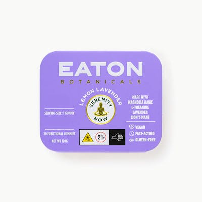 Feel calm, clear, and grounded now with Serenity Now. This is Eaton Botanicals' low-dose, vegan gummy crafted with a thoughtful blend of powerful botanicals. Designed by holistic health experts, our formula features magnolia bark to improve mood, L-theanine to promote calmness, lavender to enhance relaxation, and lion's mane to clear the mind - creating the perfect way to unwind without feeling weighed down. Low dose is your dose.