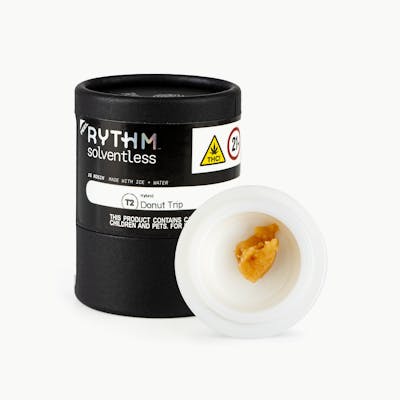 Donut Trip is a hybrid boasting a flavor profile that's all sweetness, with hints of vanilla and cinnamon. RYTHM's team uses just ice, water, heat, and pressure to craft 100% chemical-free solventless extracts. The result: concentrates that are the culmination of clean AF, true-to-plant taste - exactly like their growers intended. Expect only the plant's purest quality and most complete terpene profiles. Plus, much like a fine wine, the rosin in RYTHM Solventless develops unique flavors as it ages. Their team is especially psyched about the smooth, long-lasting tastes that linger on the palate, easier exhales, and gentler nose feel. Cannabis connoisseurs, this one's for you.