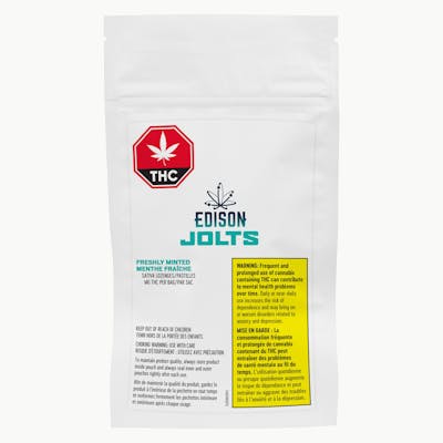 Edison JOLTS is Canada’s first 10 mg THC lozenge. These lozenges are slow-dissolving and deliver a jolt of mint flavour. For optimal sublingual/buccal absorption, suck lozenge until peppermint flavour peaks (about 15 seconds), then hold under your tongue or between cheek and gum until fully dissolved. PATENT PENDING.