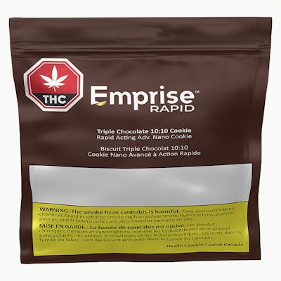 Your new favourite chocolate chip cookie! Infused with Emprise Nano Emulsion. Attention chocolate and cannabis lovers everywhere. These cookies are handmade in small batches with premium concentrates and three types of chocolate: milk, dark and Dutch cocoa powder. The soft and buttery texture mimics that of a brownie to satisfy your sweet tooth with cannabis. Emprise sources premium ingredients, never using preservatives. Each cookie contains a 10:10 mg balanced formulation of THC:CBD. These cookies can be frozen for up to three months to enjoy later.