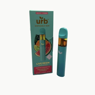 2.7g Disposable - Watermelon Sangria Watermelon Sangria is a delightful cannabis strain, enriched with live resin hemp, that captures the essence of summer in every puff. This Indica-dominant hybrid cultivar is known for its invigorating effects and tantalizing flavor profile that blends sweet, juicy watermelon notes with hints of tropical fruits and a subtle floral undertone, creating a refreshing and indulgent experience. Ingredients: Distillate, live resin hemp, terpenes