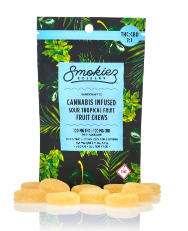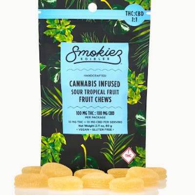 Sour Tropical Fruit | Smokies | (1:1 THC:CBD) 100mg Gummies (H)