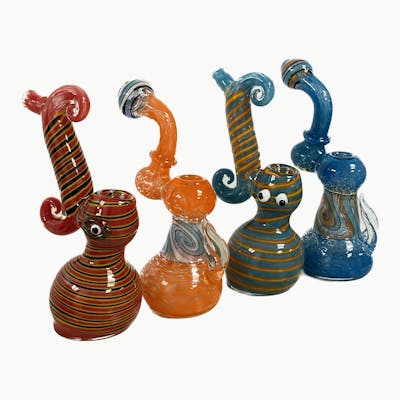 Bubblers are 7" - 8" tall. Multiple designs available. Ask your budtender for options.