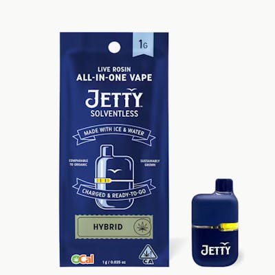 This Solventless Sativa-dominant strain from the Jetty Farm produces an effect that’s energetic without the anxiousness. Smooth citrus notes give way to a sweet and mellow, almost minty finish in this latest offering from our award-winning product line. Jetty Solventless is America's #1 live rosin. It is the cleanest oil available, made from OCal certified bud and extracted using only ice and water. Our unique filtration process removes excess fats and waxes increasing purity (and THC %) while keeping all the tasty terpenes. The result: a light, golden oil, and unmatched flavor profile. OCal is the comparable-to-organic program for cannabis grown and manufactured in California. OCal products are cultivated and extracted without pesticides, synthetic fertilizers, or bioengineering. Pure, potent, and portable, Jetty’s All-in-One Vape delivers everything you want in a vape. CCell's industry-leading Mini Tank hardware features EVOMax ceramic heating. Charged and ready to enjoy, it is designed to go wherever you do. Flavors Citrus Tropical Orange