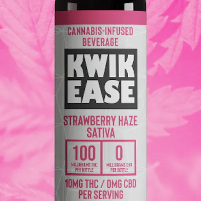 100mg of THC | 2 fl. oz. The newest addition to our Kwik Ease line, Kwik Ease Strawberry Haze Sativa packs the best parts of summer into a 2oz bottle. Blending real strawberries and fresh lemon juice with a sweet Strawberry Haze sativa, this strawberry lemonade gives you a graceful lift to elevate your summer enjoyment. 2 ounce beverage. 100 mg THC. Flavor: Strawberry Lemonade. Low calorie. Strain-specific with Strawberry Haze. Easy dosing - 5mg per capful. Water-soluble. In-house nano emulsion process. Fast-acting. Great to use for social or creative activities and outdoor enjoyment. Ingredients: Filtered water, cane sugar, lemon juice, natural flavor (including strawberry haze sativa terpene blend), MCT oil, orange oil, cannabis oil, food starch-modified, citric acid, sodium benzoate, potassium sorbate, orange extract
