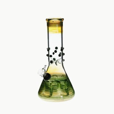 This water pipe is 8" tall and is wrapped & raked with color on top and bottom. Accentuated with color marbles, this is the perfect water pipe for those that want to add a little bit of color in their life. The beaker base allows more water which allows more filtration for a bigger hit. This is a high selling item and a must-have for every smoke shop. Made in Los Angeles, these water pipes are artistically blown for those who want the quality and durability at an exceptional price. Made In USA