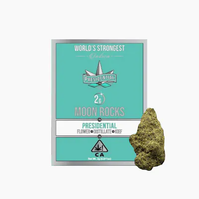 Presidential brings you top-shelf organic flower infused with Premium THC Distillate, the highest quality kief, and Strawberry flavor terpenes which is then wrapped in tobacco free blunt paper. Renowned for their Moonrock Pre-rolls, Presidential is committed to creating the most innovative, reliable, organically grown cannabis products on the market.