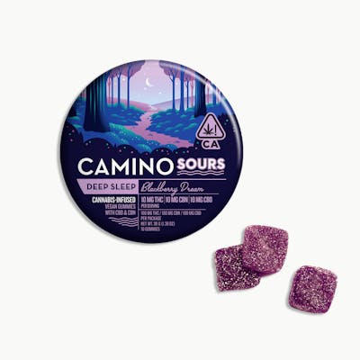 10mg THC, 10mg CBD, & 10mg CBN per piece | 100mg THC, 100mg CBD, & 100mg CBN total in 10 pieces Drift into dreamland by way of a whimsical woodland forest filled with fragrant blackberry bushes. Blackberry Dream Camino Sours combine an indica-like blend of THC, CBD, and CBN with chamomile and lavender extracts for a tranquil effect enhanced by soothing terpenes. Take one of these subtly sour gummies and call it a night. There’s a Camino for every taste, tolerance, and occasion. With a variety of terpene-tailored effects and delicious fruit flavors, we invite you to explore our family of Camino edibles. We know you’ll… find your sweet spot. TERPENES: • Myrcene - Improves the speed and intensity of the cannabis high by allowing THC to cross the blood-brain barrier more easily. • Linalool - Anti-anxiety and sedating effects. • Beta-Caryophyllene - May assist with the body's response to anxiety and stress (plus chamomile and lavender extract) INGREDIENTS: Tapioca Syrup, Sugar, Water, Pectin, Natural Flavors, Malic Acid, Citric Acid, Sodium Citrate, Sodium Malate, Chamomile Extract, Lavender Extract, Cannabis Extract, CBN Isolate, Fruit & Vegetable Juice for Color, Coconut Oil, Carnauba Wax, Terpenes. Camino by KIVA