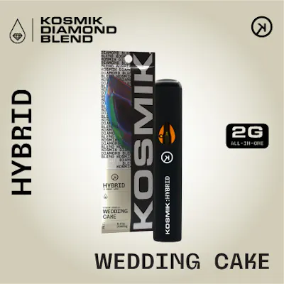 Description: • Wedding Cake – Through creamy vanilla undertones, this hybrid strain is known for its ability to provide relaxing and euphoric effects. Get ready to experience an elegant and delicious adventure worth putting a ring on. 2 grams per device | 1 device per pack The Kosmik Diamond Vapes feature premium THCA diamond concentrates, delivering a potent and flavorful high. Known for their purity and strength, these vapes provide a clear, powerful experience with each inhale. Designed for those seeking intensity, the Kosmik Diamond Blend combines innovation and quality, setting a new standard in vape potency. With a sleek design and rechargeable battery, these vapes offer convenience and a smooth, potent experience for cannabis enthusiasts.