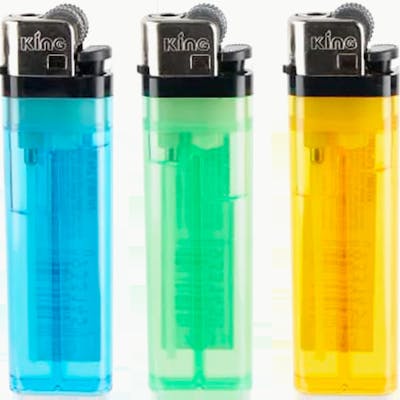 King Classic disposable butane lighters are the transparent, unbranded butane lighters found in nearly every gas station and convenience store. Customers love them for their super affordable price and how easy they are to use. They feature a standard spark wheel, adjustable flame and are good for thousands of lights.