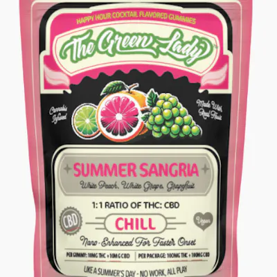 THE GREEN LADY | Chill Gummies | Summer Sangria | 1:1 THC / CBD | 10mg x 10ct | 100mg