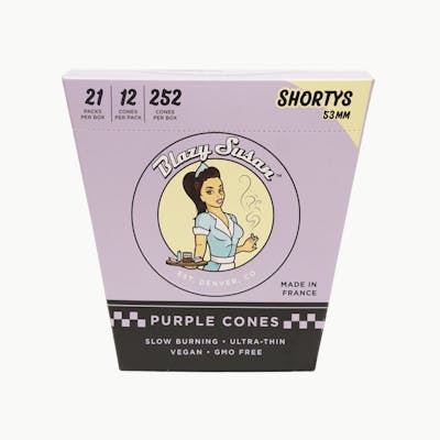 Shorty Purple Pre Rolled Cones | Take a little break with the new Shorty Cones from Blazy Susan! These mini cones are 53mm – around half the size of our regular cones. Whether you just need a quick sesh or want to give everyone their own at the party, the Shortys are just what you need! Take one on your next hike or walk around the park and treat yourself right.