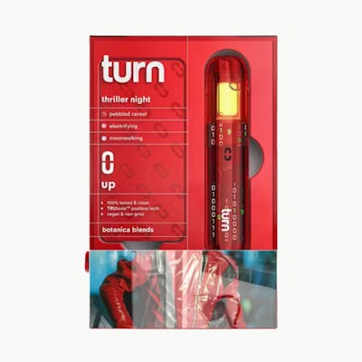 TURN presents RETROVISION THRILLER NIGHTS, a 2G all-in-one cartridge delivering an electrifying THC/THCV experience that's ready to elevate your session. This sleek, portable vape combines convenience with potency, featuring a powerful cannabinoid blend designed for those seeking enhanced focus and euphoric energy. The THCV addition provides a unique uplifting twist, making this cartridge perfect for creative pursuits or social gatherings. Expect vibrant, complex flavors that dance across your palate with every draw. The all-in-one design means no charging hassle—simply unbox and enjoy. TURN's commitment to quality shines through in every puff, offering smooth vapor production and consistent performance from first hit to last. Whether you're a seasoned enthusiast or exploring cannabinoid diversity, RETROVISION THRILLER NIGHTS delivers a memorable experience that lives up to its bold name. Compact, discreet, and powerfully effective—this 2G cartridge is your ticket to elevated moments.