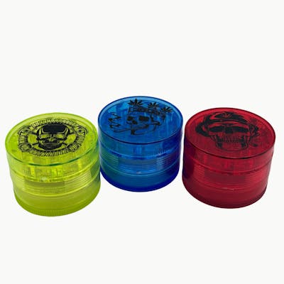 Bold skull design meets everyday function in this 4-piece acrylic grinder. Includes sharp teeth, a mesh screen, and pollen catcher, all packed in a 50mm, lightweight body. Comes in a 12-count display—perfect for retail shelves. Key Features: 50mm compact size for easy handling Durable acrylic construction 4-piece setup with mesh screen and catcher Magnetic lid for secure closure Assorted skull designs