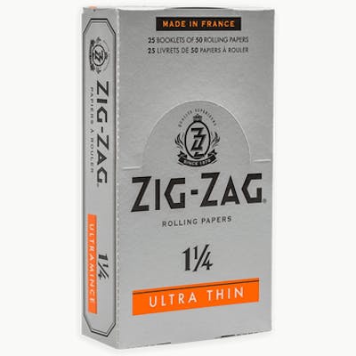 Zig Zag Ultra Thin 1 1/4 Rolling Papers come in 25 packs of 50 leaves each. 25 packs of 50 leaves each Size: 1 1/4" inches. Easy to Roll. Ultra Thin. Less Paper Taste. Slow, Smooth Burn Pure paper and natural gum These papers are made in France!