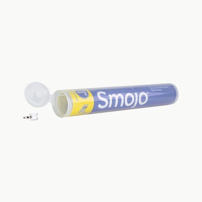 Using caution on glass pipes, turn pipe upside down and insert Smojo, using a gentle rocking motion until the tail passes through the hole If Smojo falls out, spread tails wider apart and re-insert When needed, clean Smojo in alcohol then dry thoroughly or burn clean with lighter.