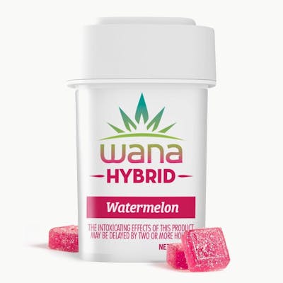 100 MG THC PER PKG | 10 MG THC PER PIECE Wana’s Watermelon Sour Chews are infused with hybrid terpene-enhanced distillate, which may lead to a more balanced and mild experience. Handcrafted with all-natural, vegan, and gluten-free ingredients