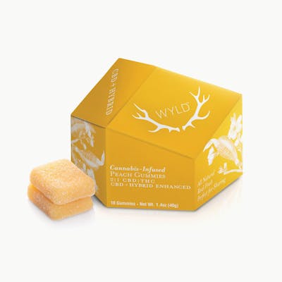 New to edibles? Our Peach 2:1 CBD:THC gummies are made with more CBD than THC, making them a great option for easing into edibles. They are made with real fruit and enhanced with a balanced Hybrid terpene profile that may assist in creating a sense of ease and overall well being. It’s a little like a vacation for your body. Enjoy! 100mg CBD:50mg THC per package, 10mg CBD, 5mg THC per gummy. Ingredients: Sugar, Tapioca Syrup, Water, Peach Juice Concentrate, Gelatin, Coconut Oil, Citric Acid, Natural Flavoring, Pectin (Pectin, Sodium Citrate), Hemp Extract, Cannabis Extract, Sunflower Lecithin Contains: Coconut