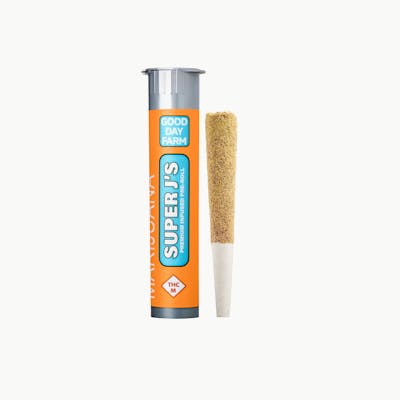 Good Day Farm Super J's are 1g pre-rolls that are super-infused for superior power and superior flavor. But how do we make this pre-roll superpowered? We start with Good Day Farm premium, full flower and super-infuse it with an explosion of delicious shortbread dessert terpenes and high potency cannabis oil. We take a full gram of the THC-infused flower, roll it with organic papers, and coat it with a supersuit of premium kief. Super J's are our most potent and flavorful pre-roll, so you can fly a little higher. Strain-Specific | Super-Infused | Ready to Spark Super People. Super Cannabis. Super J's. "Pixel Face commands attention with its bold, creamy flavor and a touch of tantalizing complexity. Said to start with a euphoric jolt, lighting up your mind with fresh ideas before mellowing into a deep, satisfying state of chill. This is a vibrant voyage that transforms the ordinary into a masterpiece. For an adventure that’s both stimulating and soothing, Pixel Face is your pixel-perfect pick. LINEAGE: Biscotti x Jealousy f2 CLASSIFICATION: Hybrid TERPENES: Beta Caryophyllene, Limonene, Nerolidol, Linalool, Humulene FEEL GOOD STATES: Soothe, Unwind AROMA: Sweet citrus cake, tart berries, cotton candy FLAVOR: Sweet citrus cake, tart berries, cotton candy"