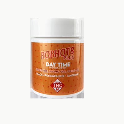 Experience the perfect daytime blend with our Robhots Plus line, delivering consistent and precise dosing for your well-being. This 10-pack features gummies infused with 10mg of THC, 20mg of CBD, and 10mg of CBC in each gummy. Crafted for daytime use, enjoy the balanced effects of THC and the therapeutic benefits of CBD and CBC. The pack offers three enticing flavors - Peach, Pomegranate, and Tangerine - ensuring a delightful and tailored experience. With Robhots Plus Day Time Gummies, find focus, relaxation, and relief in every bite. Elevate your daytime routine with gummies designed for consistent dosing and optimal well-being. Flavors Included: Peach Pomegranate Tangerine Product Breakdown (dosage info): 10x 10mg THC, 20mg CBD & 10mg CBC Gummies