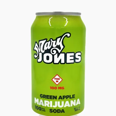 "Mary Jones-Soda-100mg-1ct-Green Apple Mary Jones Cannabis-Infused Green Apple Soda (100mg THC) is a crisp, tart, and wildly refreshing twist on a classic flavor. Bursting with the bold, mouth-puckering taste of sour green apples and balanced with just the right amount of sweetness, this fizzy favorite is infused with 100mg of fast-acting THC for an elevated experience. Perfect for those who love a tangy kick with their buzz, this drink is your go-to for bold flavor and good vibes. Sip. Savor. Enjoy."
